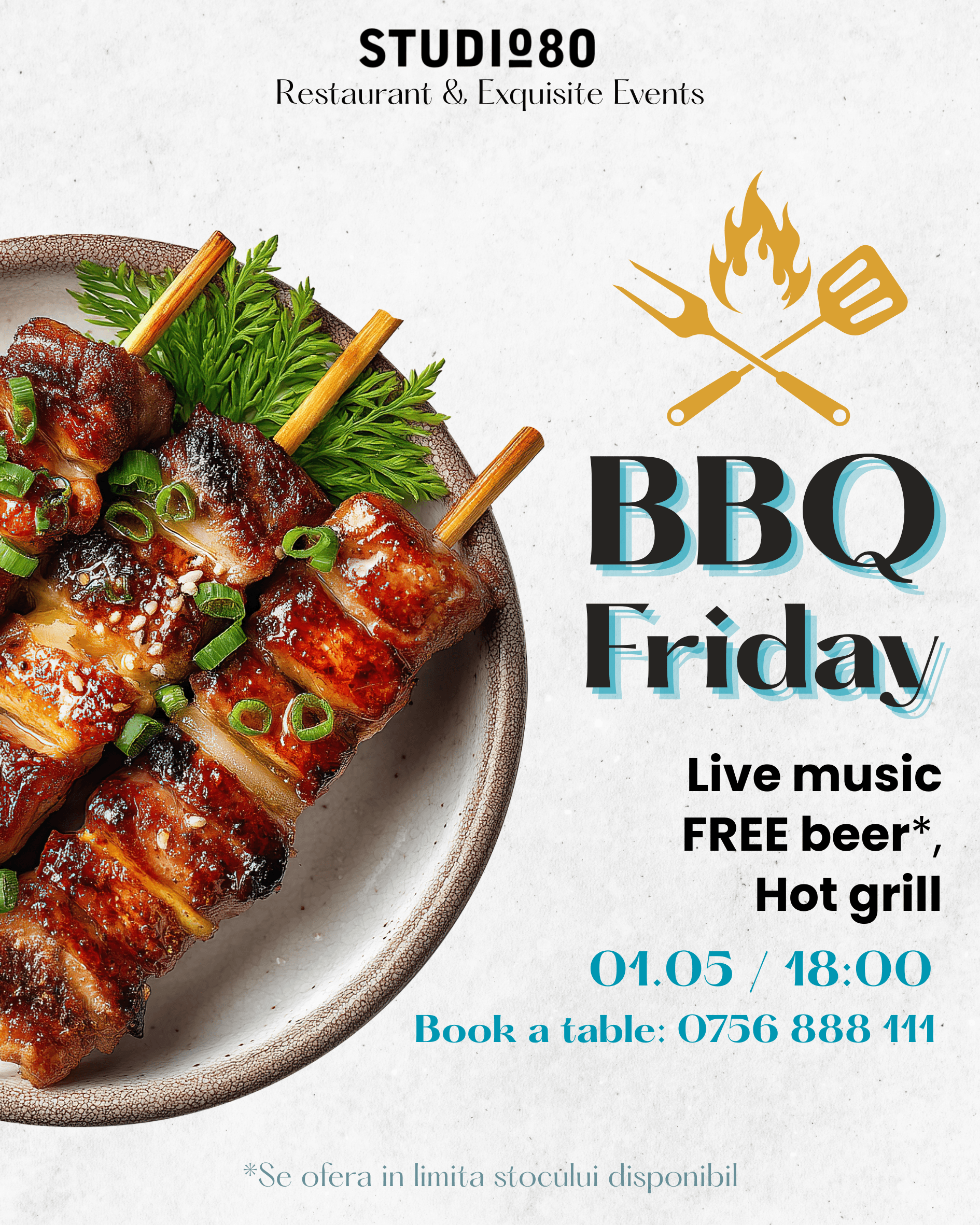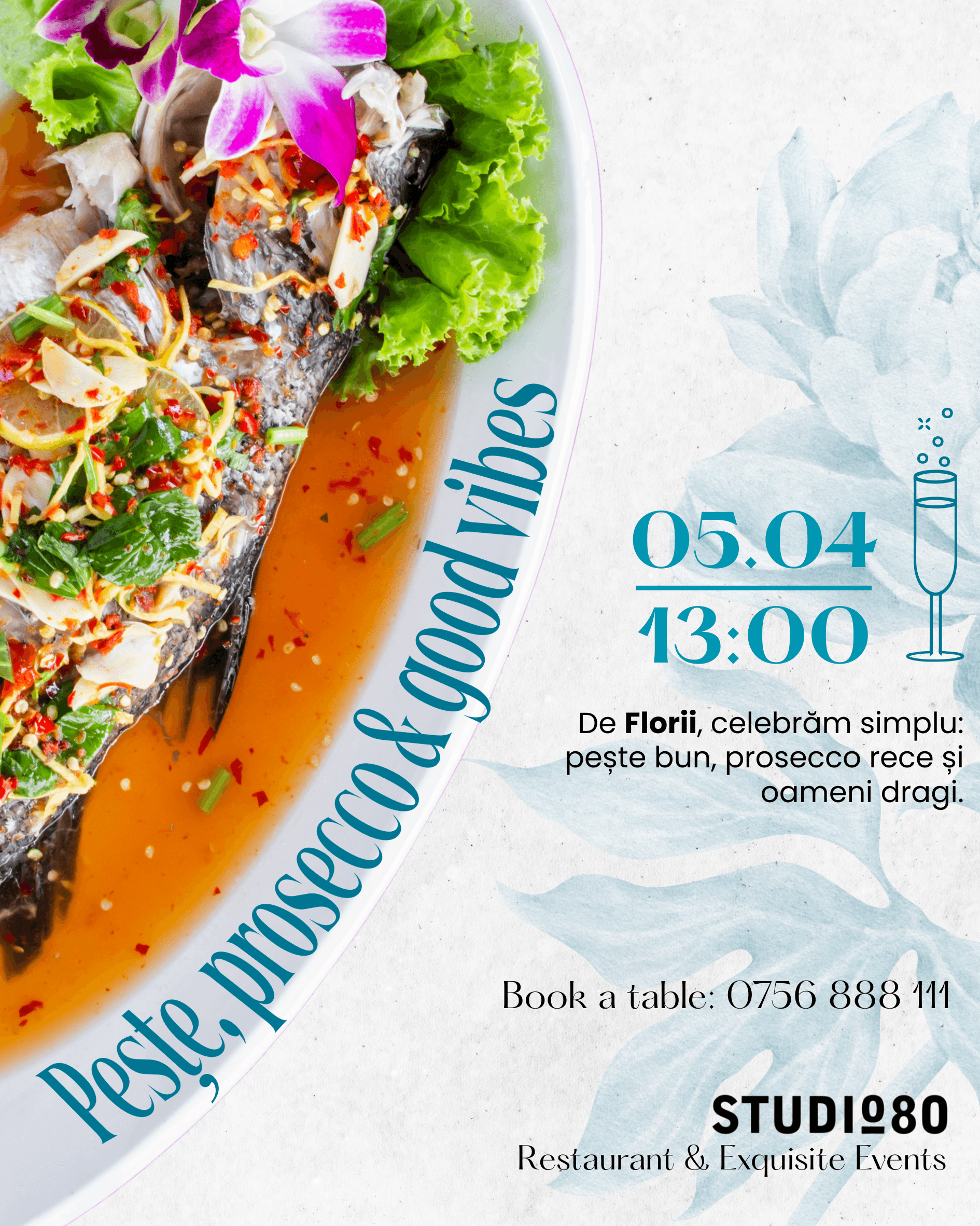 Fondat în 2011 din pasiune pentru Mediterană, Bistro-ul Studio 80 aduce farmecul sudic într-o experiență culinară autentică. Îmbinăm fructe de mare proaspete, ierburi aromatice, condimente exotice și delicatețe franțuzească cu căldura vibrantă a Spaniei.